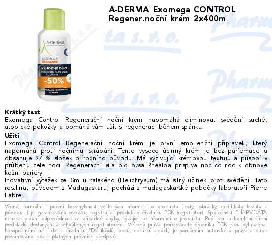 A-DERMA Exomega CONTROL Regener.noční krém 2x400ml
