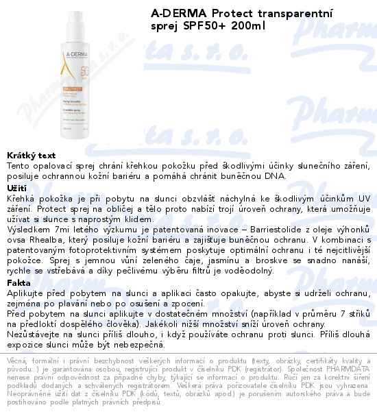 A-DERMA Protect transparentní sprej SPF50+ 200ml