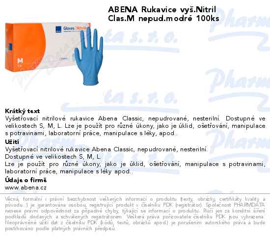 ABENA Rukavice vyš.Nitril Clas.M nepud.modré 100ks