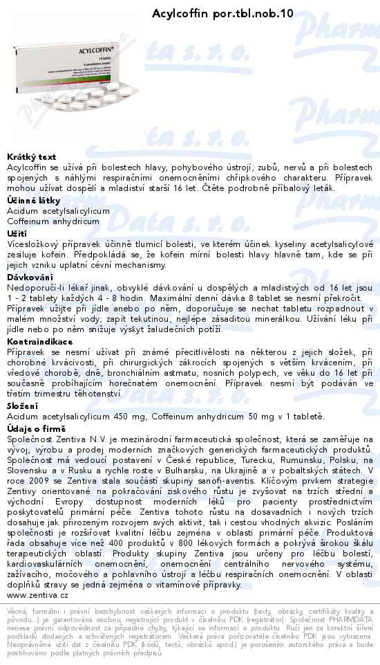 Obsahuje: KYSELINA ACETYLSALICYLOVÁ, KOMBINACE KROMĚ PSYCHOLEPTIK