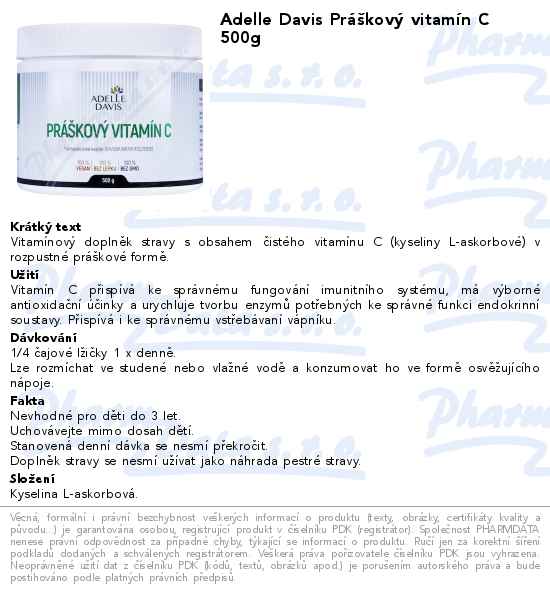 Adelle Davis Práškový vitamín C 500g