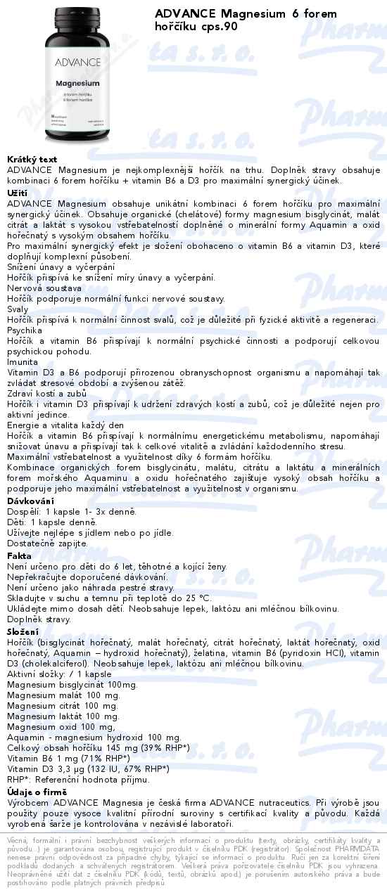 ADVANCE Magnesium 6 forem hořčíku cps.90