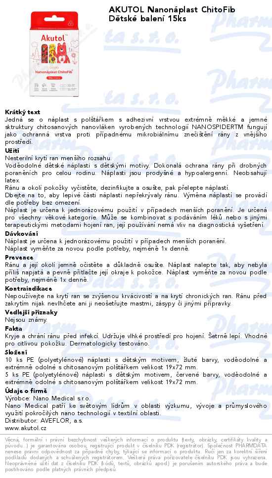 AKUTOL Nanonáplast ChitoFib Dětské balení 15ks