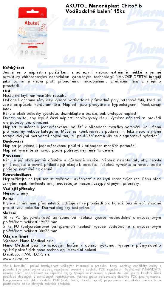 AKUTOL Nanonáplast ChitoFib Voděodolné balení 15ks