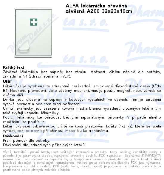 ALFA lékárnička dřevěná závěsná A200 32x23x10cm