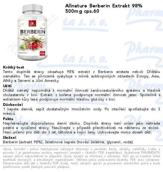 Allnature Berberin Extrakt 98% 500mg cps.60