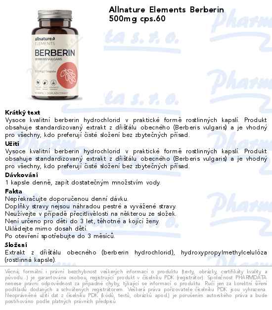 Allnature Elements Berberin 500mg cps.60