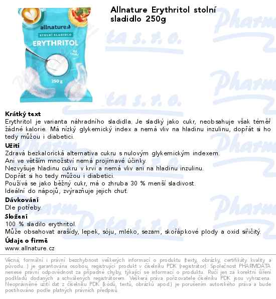 Allnature Erythritol stolní sladidlo 250g