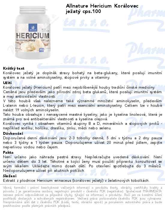 Allnature Hericium Korálovec ježatý cps.100