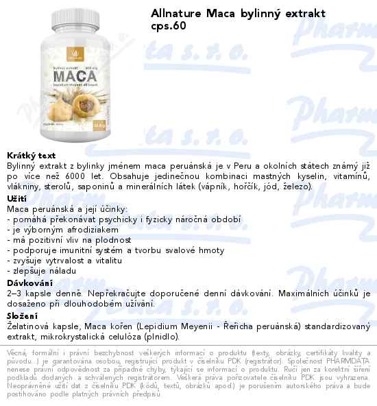 Allnature Maca bylinný extrakt cps.60