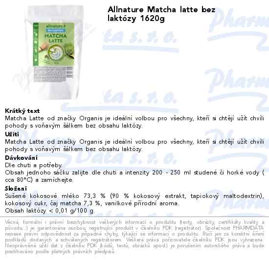 Allnature Matcha latte bez laktózy 1620g