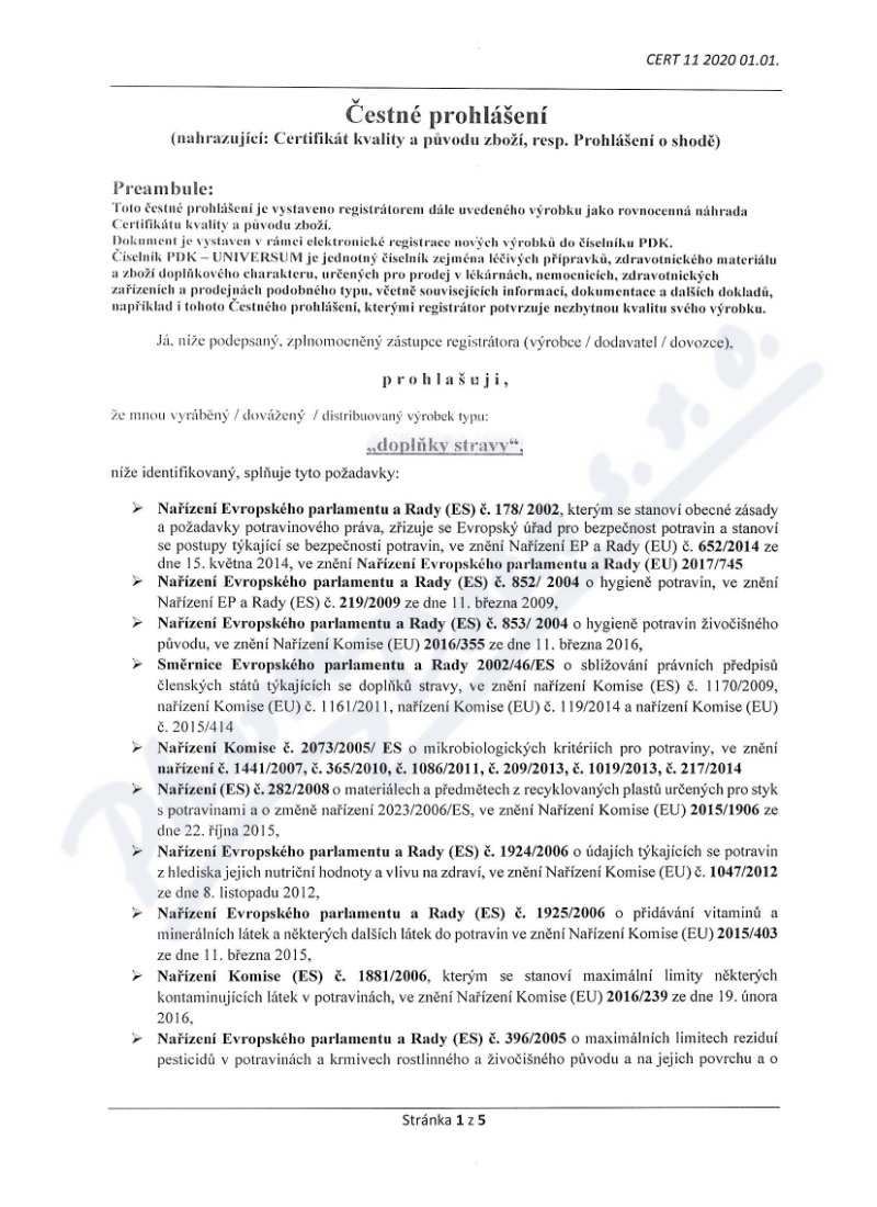 5 strany čestného prohlášení: strana 1, strana 2, strana 3, strana 4, strana 5,