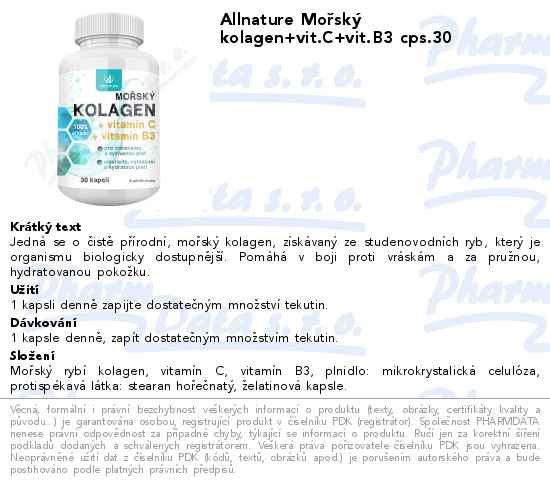 Allnature Mořský kolagen+vit.C+vit.B3 cps.30