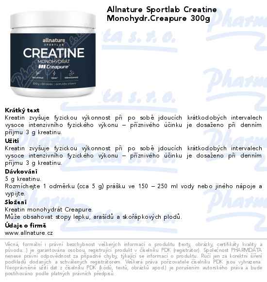 Allnature Sportlab Creatine Monohydr.Creapure 300g