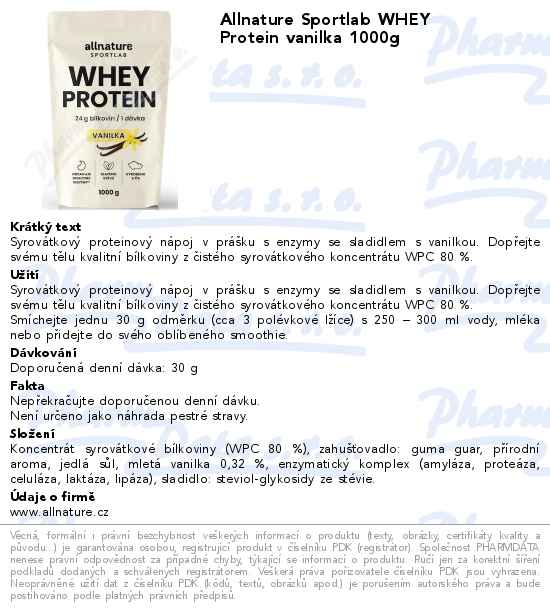 Allnature Sportlab WHEY Protein vanilka 1000g