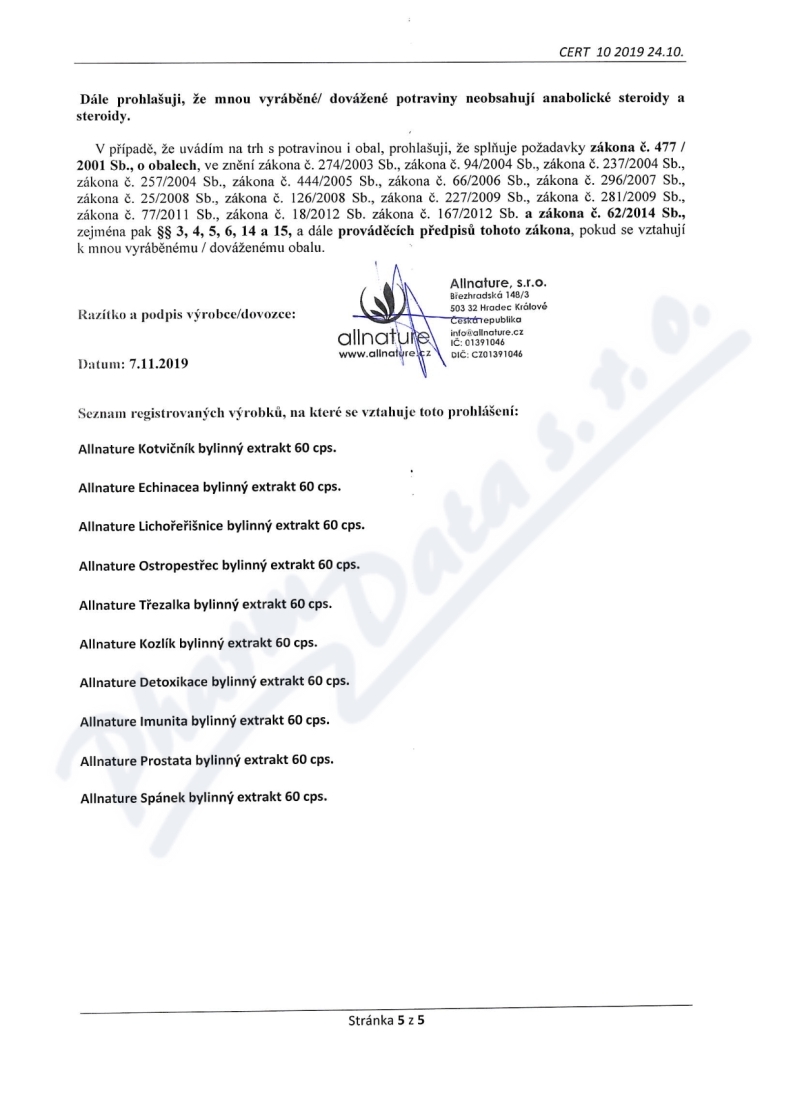 5 strany čestného prohlášení: strana 1, strana 2, strana 3, strana 4, strana 5,