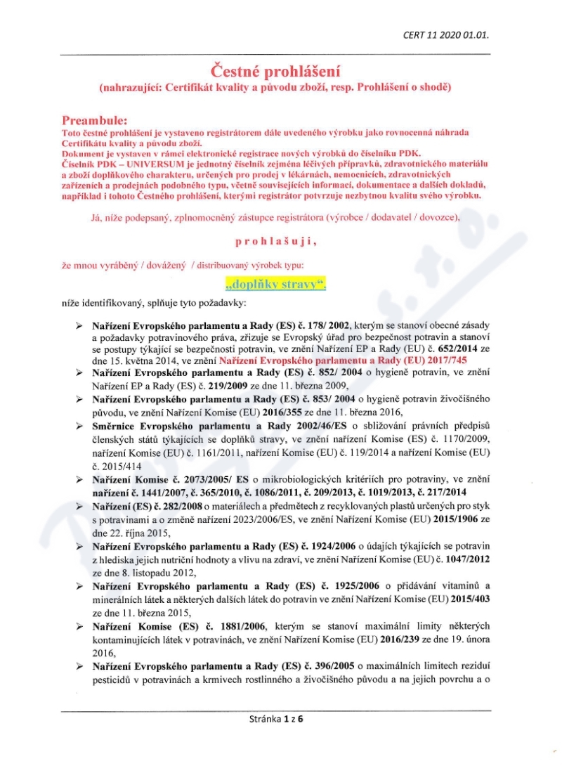 6 strany čestného prohlášení: strana 1, strana 2, strana 3, strana 4, strana 5, strana 6,