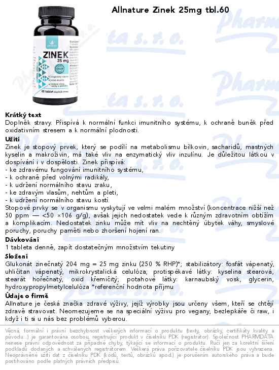 Allnature Zinek 25mg tbl.60