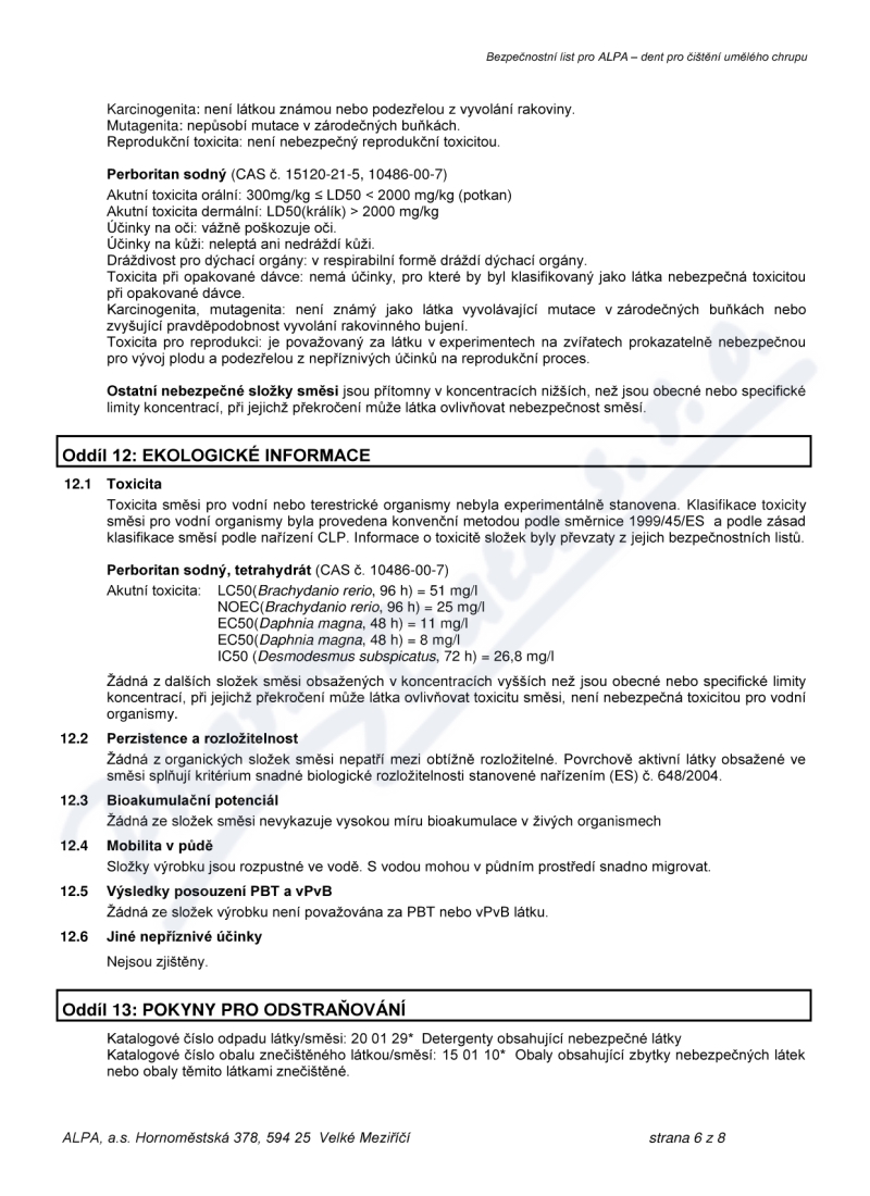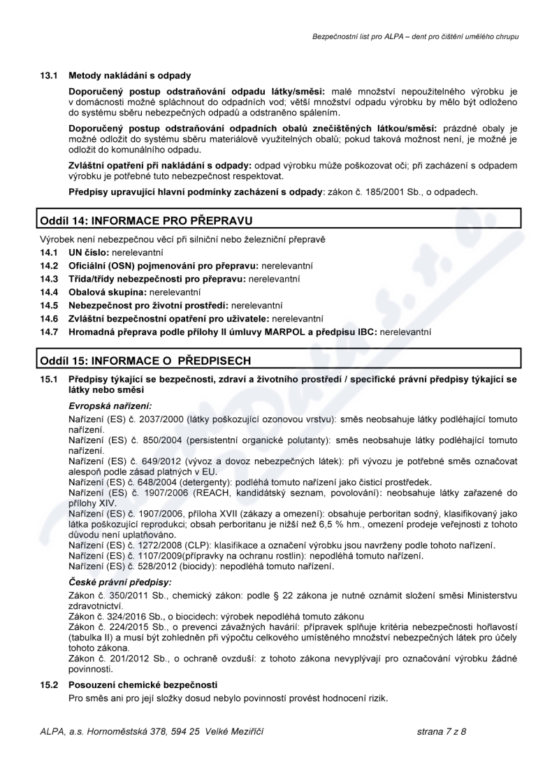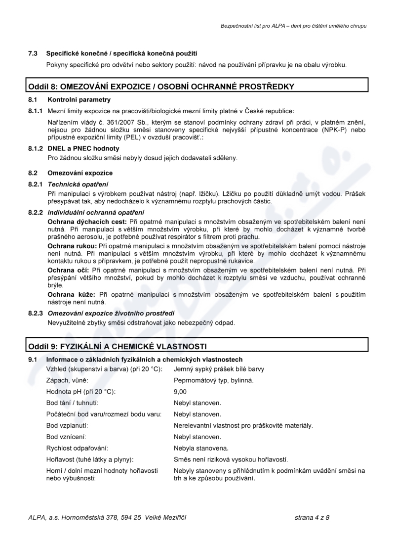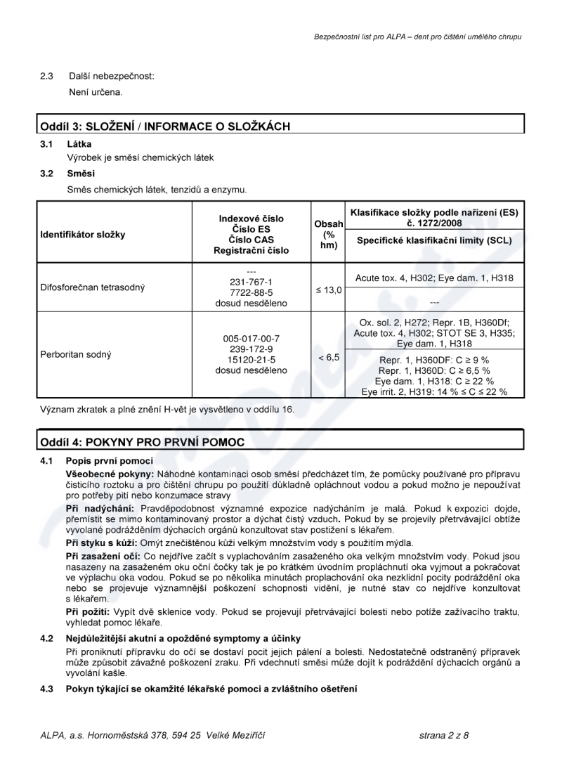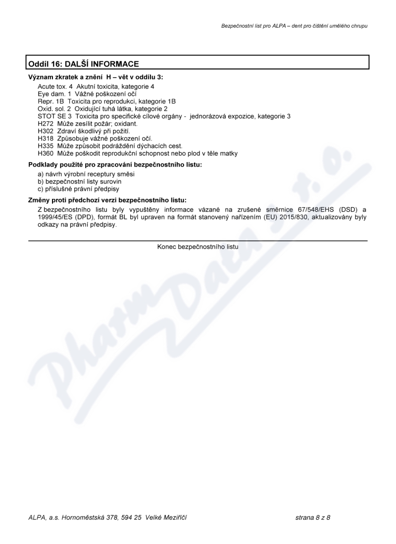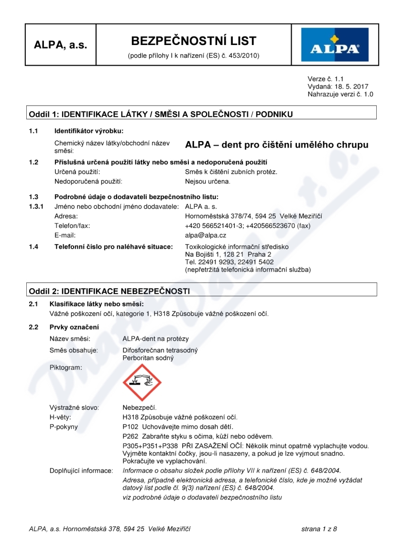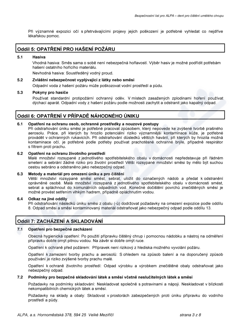 8 strany bezpečnostních listů: strana 1, strana 2, strana 3, strana 4, strana 5, strana 6, strana 7, strana 8,