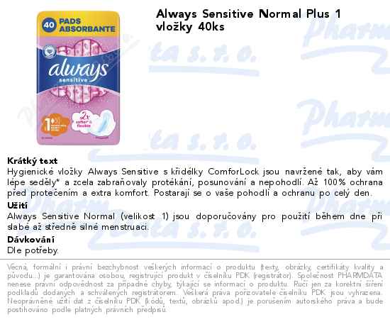 Always Sensitive Normal Plus 1 vložky 40ks