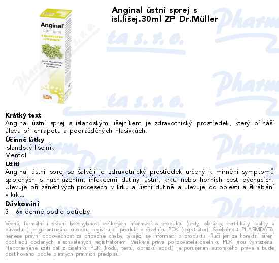 Anginal ústní sprej s isl.lišej.30ml ZP Dr.Müller