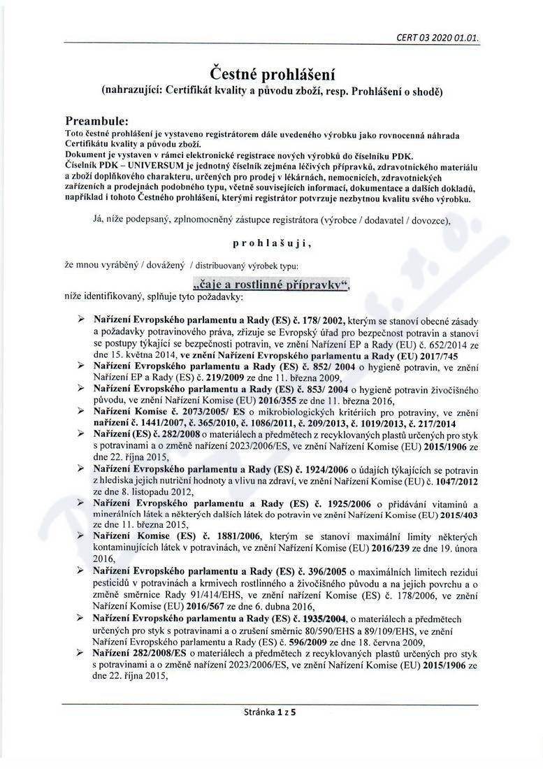 5 strany čestného prohlášení: strana 1, strana 2, strana 3, strana 4, strana 5,