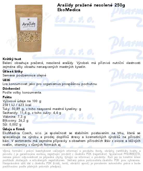 Arašídy pražené nesolené 250g EkoMedica