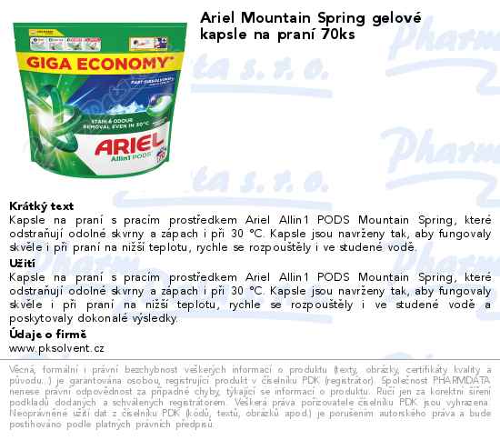 Ariel Mountain Spring Allin1 gel.kap.na praní 70ks