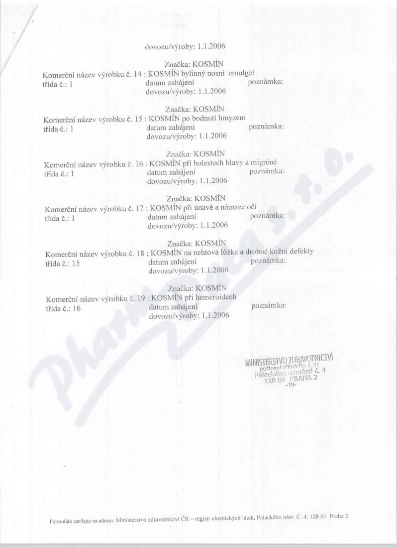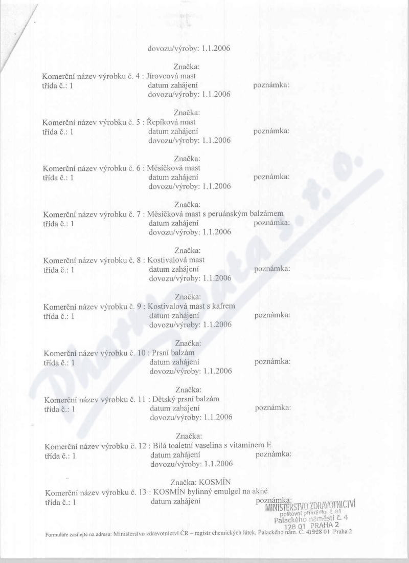 4 strany osvědčení hlavního hygienika: strana 1, strana 2, strana 3, strana 4,