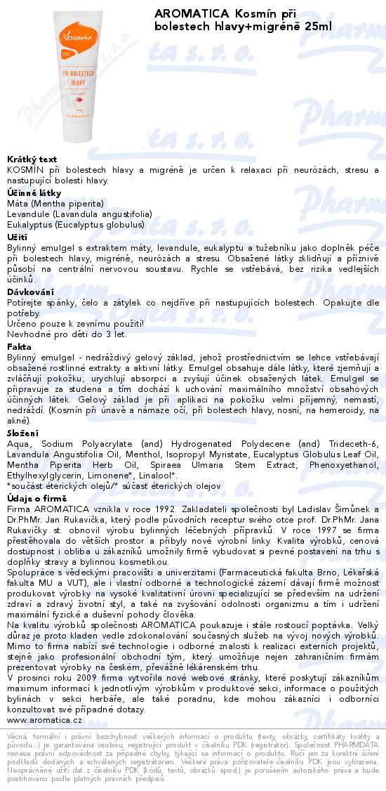 AROMATICA Kosmín při bolestech hlavy+migréně 25ml