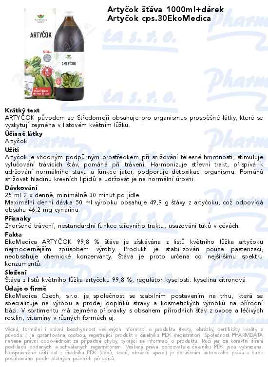Artyčok šťáva 1000ml+dárek Artyčok cps.30EkoMedica