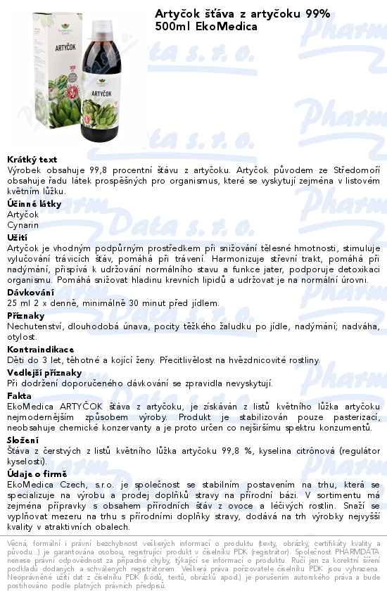 Artyčok šťáva z artyčoku 99% 500ml EkoMedica