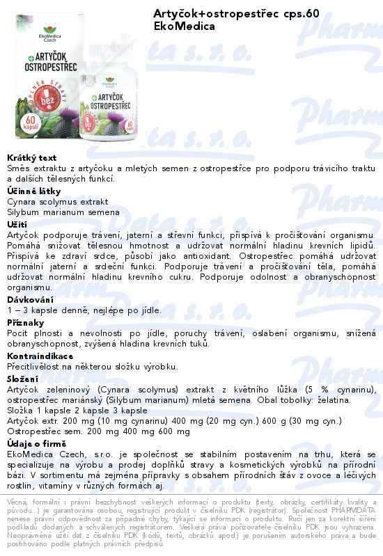 Artyčok+ostropestřec cps.60 EkoMedica