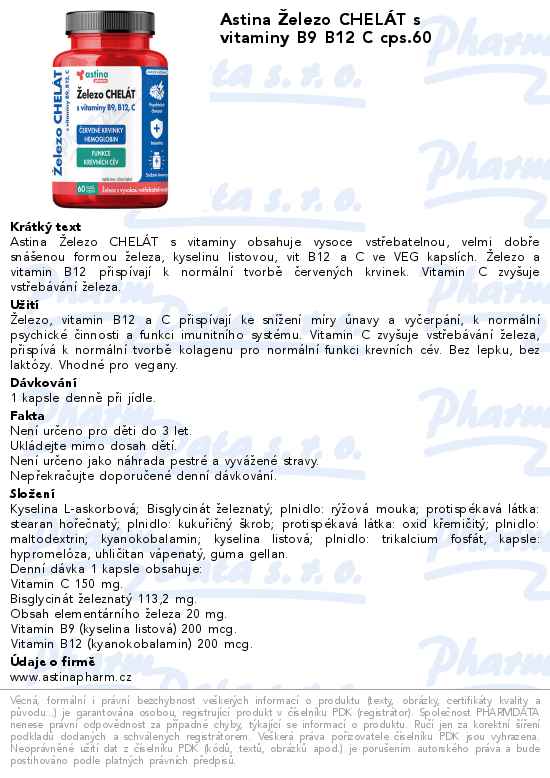 Astina Železo CHELÁT s vitaminy B9 B12 C cps.60