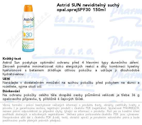 Astrid SUN neviditelný suchý opal.sprejSPF30 150ml