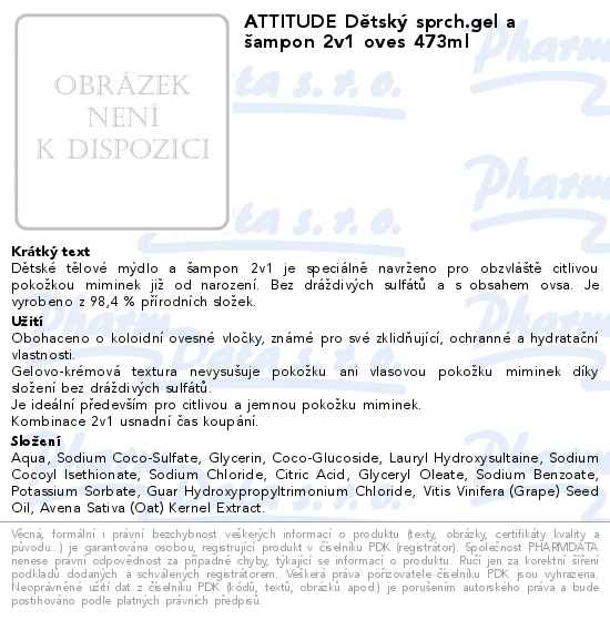 ATTITUDE Dětský sprch.gel a šampon 2v1 oves 473ml