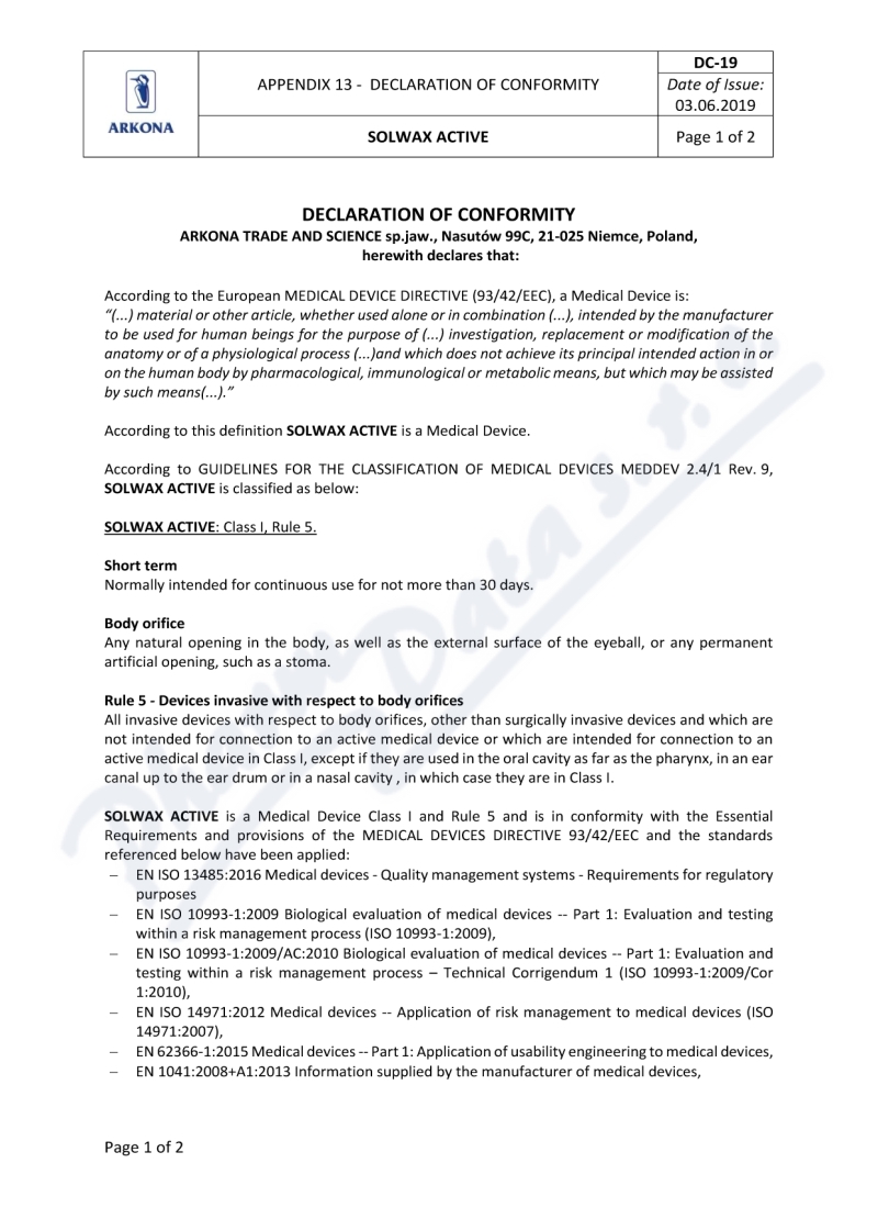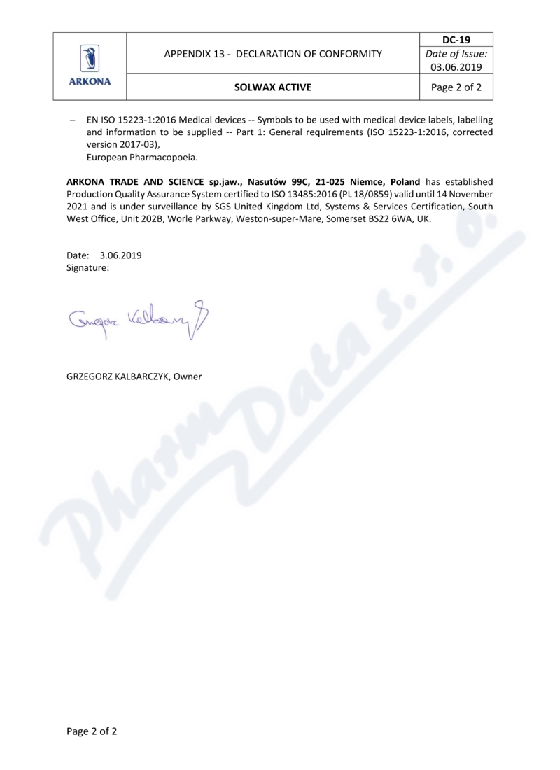 2 strany prohlášení o shodě: strana 1, strana 2,