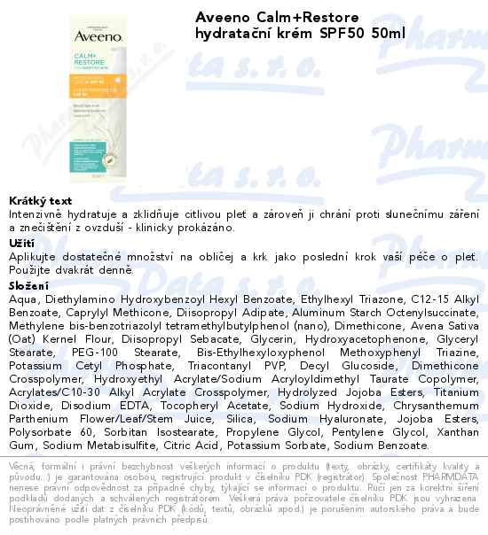 Aveeno Calm+Restore hydratační krém SPF50 50ml