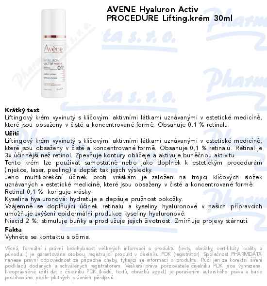 AVENE Hyaluron Activ PROCEDURE Lifting.krém 30ml