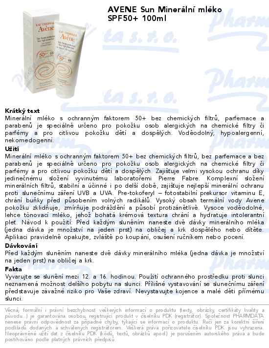 AVENE Sun Minerální mléko SPF50+ 100ml