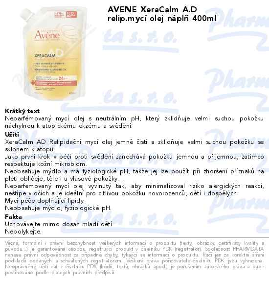 AVENE XeraCalm A.D relip.mycí olej náplň 400ml