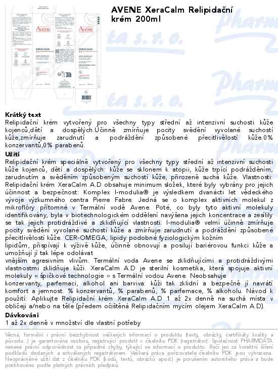 AVENE XeraCalm Relipidační krém 200ml
