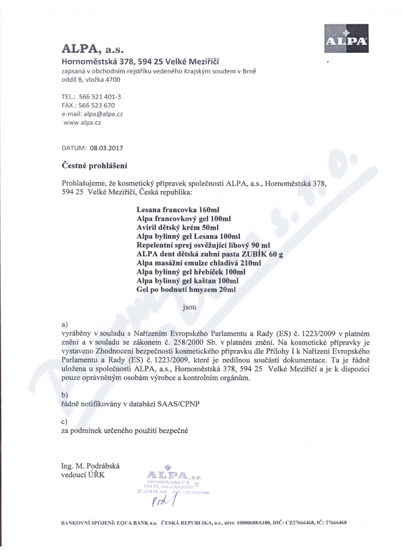 Výrobce: ALPA A.S.