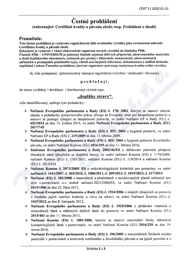 5 strany čestného prohlášení: strana 1, strana 2, strana 3, strana 4, strana 5,