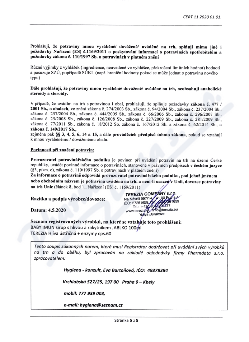 Výrobce: TEREZIA COMPANY S.R.O.