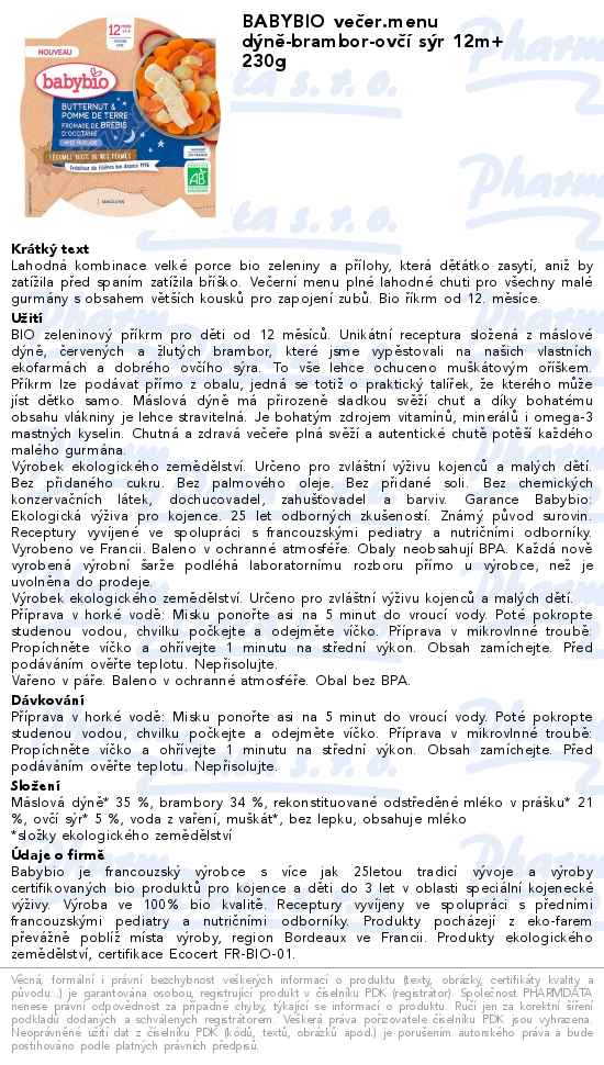 BABYBIO večer.menu dýně-brambor-ovčí sýr 12m+ 230g