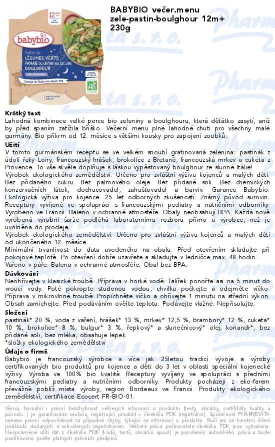BABYBIO večer.menu zele-pastin-boulghour 12m+ 230g