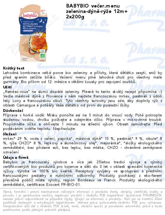 BABYBIO večer.menu zelenina-dýně-rýže 12m+ 2x200g