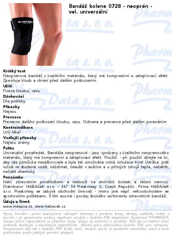 Bandáž kolene 0728 - neoprén - vel. univerzální