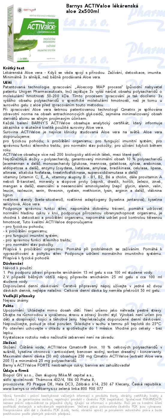 Barnys ACTIValoe lékárenská aloe 2x500ml
